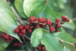 - Daunnya berbentuk oval dengan ujung yang runcing, dan biasanya berwarna hijau.