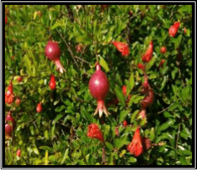 merah serta putih. Ukuran buah delima ketika tua dan matang memiliki lebar 5 inci dengan kulit berwana merah tua, kasar dan berbentuk granat. Bunga delima merupakan bunga banci, aktinomorf, dan terpisah. [1]