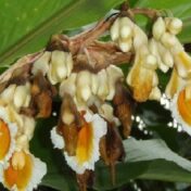 Klasifikasi : Kingdom: Plantae Divisi: Magnoliophyta Kelas: Liliopsida Ordo: Zingiberales Famili: Zingiberaceae Genus: Alpinia Spesies: Alpinia luteocarpa Elmer. Kegunaan : Rimpang berkhasiat untuk obat gangguan pencernaan Deskripsi: Alpinia luteocarpa adalah tanaman yang tumbuh dalam bentuk semak atau herbaceous yang bisa mencapai ketinggian sekitar 1,5 hingga 2 meter. Daun-daunnya berbentuk daun pisang dengan ujung meruncing dan permukaan yang mengkilap. Daunnya besar… Read more »